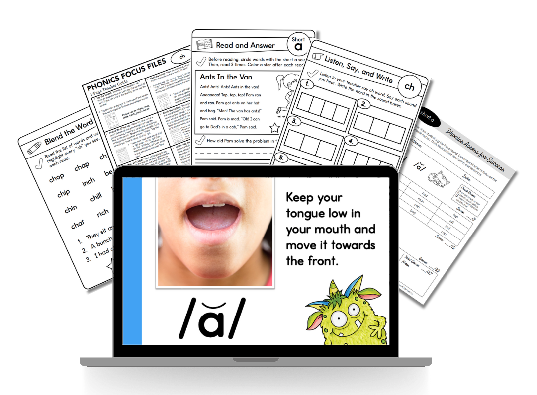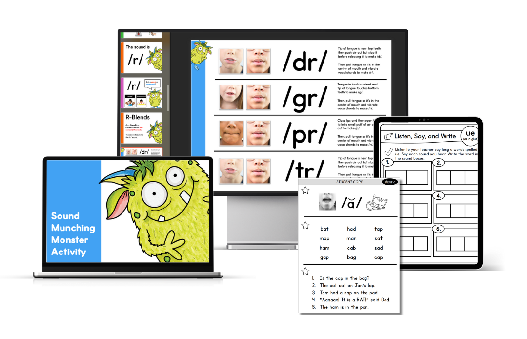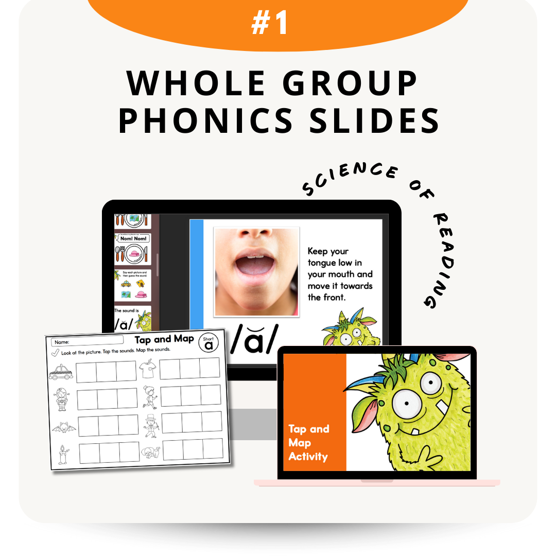 “This is a great resource to introduce spelling patterns in word study. My firsties love the ‘nom nom and blarg’ slides along with the getting to move to the pictures. The slides with the phonemes and real photographs are helpful with the spelling patterns. It’s a must have resource for 1st grade! Thank you!”